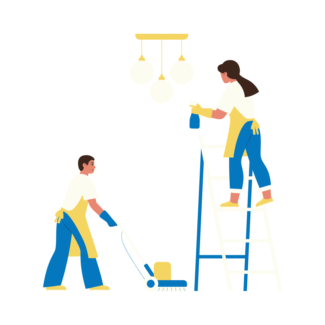 -Nettoyage complet des surfaces hautes, y compris luminaires, tringles à rideaux et dessus d’armoire.